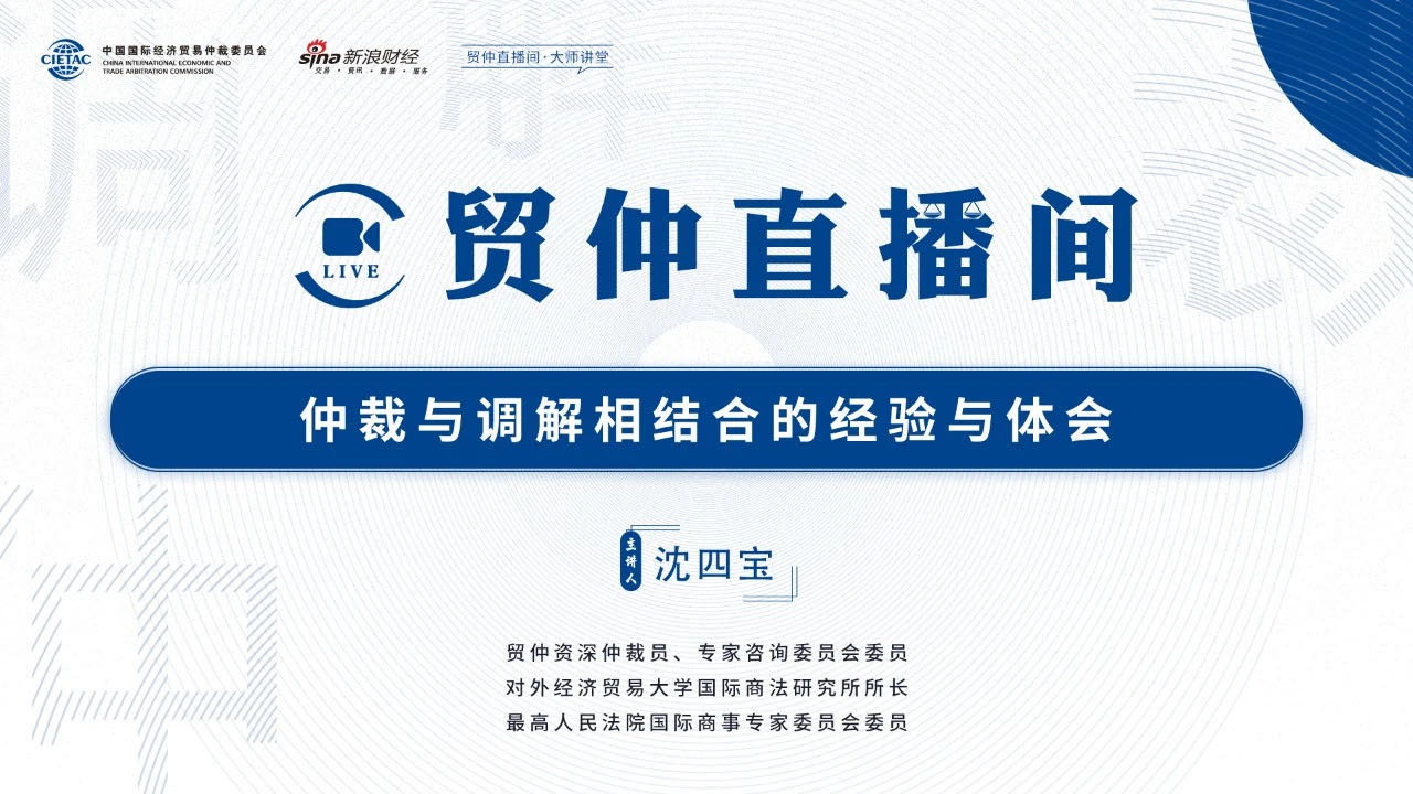 貿(mào)仲直播間-大師講堂系列課程第三講將于2021年4月27日(星期二)上午10時(shí)邀請(qǐng)貿(mào)仲資深仲裁員、專(zhuān)家咨詢(xún)委員會(huì)委員,對(duì)外經(jīng)濟(jì)貿(mào)易大學(xué)國(guó)際商法研究所所長(zhǎng),最高人民法院國(guó)際商事專(zhuān)家委員會(huì)委員沈四寶教授,講解“仲裁與調(diào)解相結(jié)合的經(jīng)驗(yàn)與體會(huì)”。