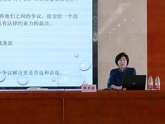 培訓(xùn)環(huán)節(jié),解常晴副院長圍繞“仲裁解決商事爭議的優(yōu)越性”“訂立有效有利的仲裁條款與合同爭議解決法律風(fēng)險控制” “仲裁條款訂立原則、策略和技巧”“企業(yè)參加仲裁程序應(yīng)注意的關(guān)鍵問題 ”“中國貿(mào)仲的實踐與發(fā)展”五個方面展開講解。她從商事仲裁的起源、概念、特征入手闡明商事仲裁的基本內(nèi)涵,結(jié)合豐富的案例和數(shù)據(jù)詳細介紹了仲裁的優(yōu)越性,進而對企業(yè)訂立仲裁條款和參與仲裁程序應(yīng)注意的問題進行重點提示和指導(dǎo),并為中石油天然氣銷售系統(tǒng)爭議解決條款的訂立提出具體建議。解常晴副院長最后介紹了貿(mào)仲的歷史和發(fā)展成就,并表示新時代背景下,貿(mào)仲將積極發(fā)揮總分會整體的專業(yè)優(yōu)勢,努力為各地企業(yè)就近提供公正高效的仲裁服務(wù)。