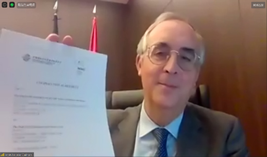 2021年7月8日,中國國際經(jīng)濟貿易仲裁委員會(CIETAC)與西班牙馬德里國際仲裁中心(MIAC)通過線上方式舉行了《合作協(xié)議》簽署儀式。貿仲副主任兼秘書長王承杰先生與馬德里國際仲裁中心主席José Antonio Caínzos先生分別代表雙方在《合作協(xié)議》上簽字。馬德里國際仲裁中心秘書長及馬德里律師協(xié)會國際關系負責人一同出席了本次儀式。