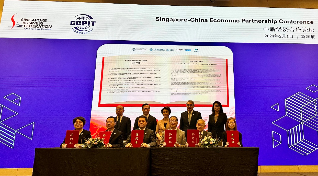 2月1日,在中國貿(mào)促會會長任鴻斌率中國企業(yè)家代表團(tuán)訪問新加坡期間,中國國際經(jīng)濟(jì)貿(mào)易仲裁委員會副主任兼秘書長王承杰、中國海事仲裁委員會副主任李虎、中國貿(mào)促會調(diào)解中心執(zhí)行副主席蔡晨風(fēng)與新加坡國際仲裁中心首席執(zhí)行官林美恩、新加坡海事仲裁院主席趙錫燊、新加坡國際調(diào)解中心主席林長仁在新加坡共同發(fā)布《為區(qū)域經(jīng)濟(jì)發(fā)展提供法律服務(wù)保障的聯(lián)合聲明》。中國貿(mào)促會會長任鴻斌,新加坡貿(mào)易與工業(yè)部兼文化、社區(qū)及青年部政務(wù)部長劉燕玲,中國駐新加坡大使館公使銜參贊宗長青,新加坡工商聯(lián)合總會主席林明彥,新加坡律政部副常任秘書張伊靜出席并見證聲明發(fā)布。