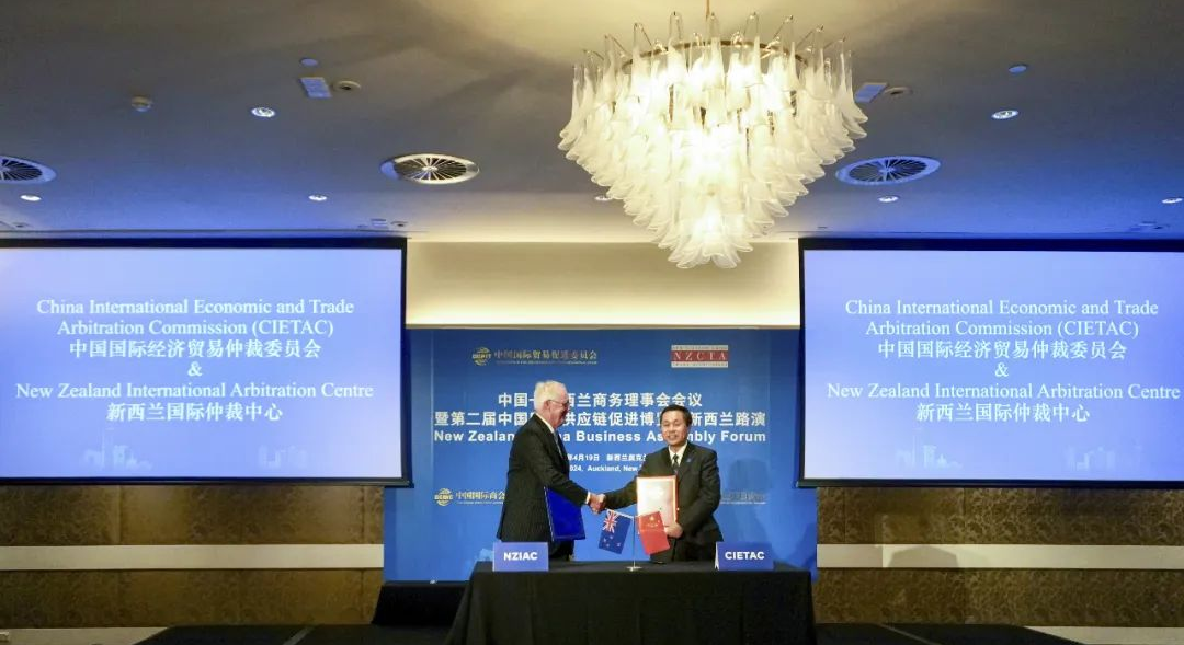 貿(mào)仲代表團出席了由中國貿(mào)促會和新西蘭中國貿(mào)易協(xié)會共同主辦的中國-新西蘭商務(wù)理事會會議暨第二屆中國國際供應鏈促進博覽會新西蘭路演。任鴻斌會長出席活動并致辭,新西蘭-中國貿(mào)易協(xié)會主席約翰·考克倫(John Cochrane)、新西蘭貿(mào)發(fā)局大中華區(qū)主任白安祖(Andrew White)、中國駐新西蘭大使王小龍、駐奧克蘭總領(lǐng)事陳世杰等出席活動,中新兩國工商界代表200余與會。會上,貿(mào)仲副主任兼秘書長王承杰與新西蘭國際仲裁中心主任約翰·格林(John Green)代表雙方簽訂了合作協(xié)議。該合作協(xié)議搭建了中新兩國仲裁機構(gòu)的交流平臺,有利于通過共同努力增進中方和新方企業(yè)在仲裁、爭議風險防范等方面的認識與理解。