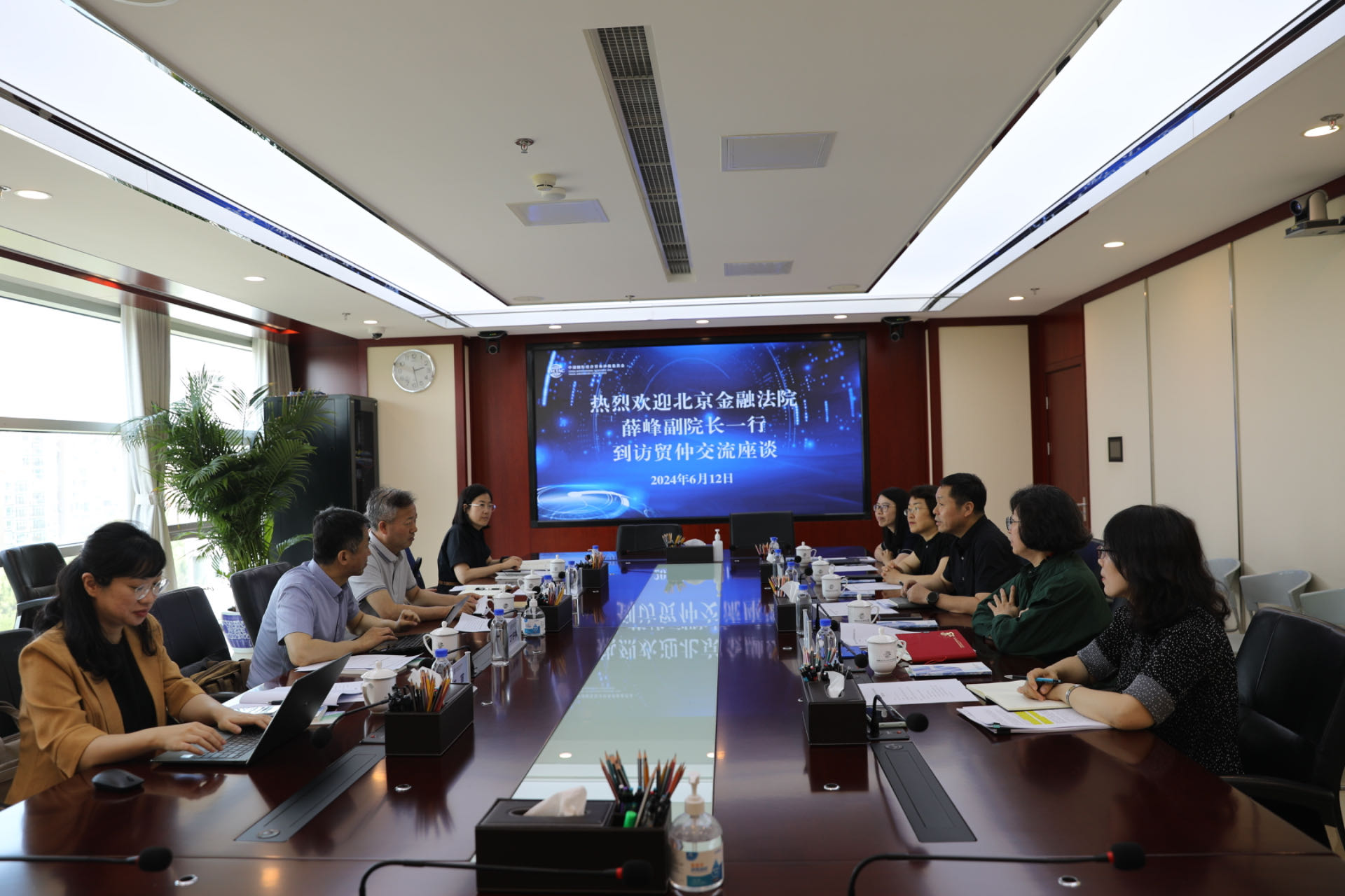 近日,北京金融法院黨組成員、副院長薛峰,執(zhí)行局局長雷運(yùn)龍,審二庭庭長丁宇翔一行到訪貿(mào)仲,與貿(mào)仲副主任兼秘書長王承杰、副院長解常晴等就金融仲裁的司法審查、仲裁保全與執(zhí)行、完善仲裁與司法銜接機(jī)制等問題進(jìn)行座談。