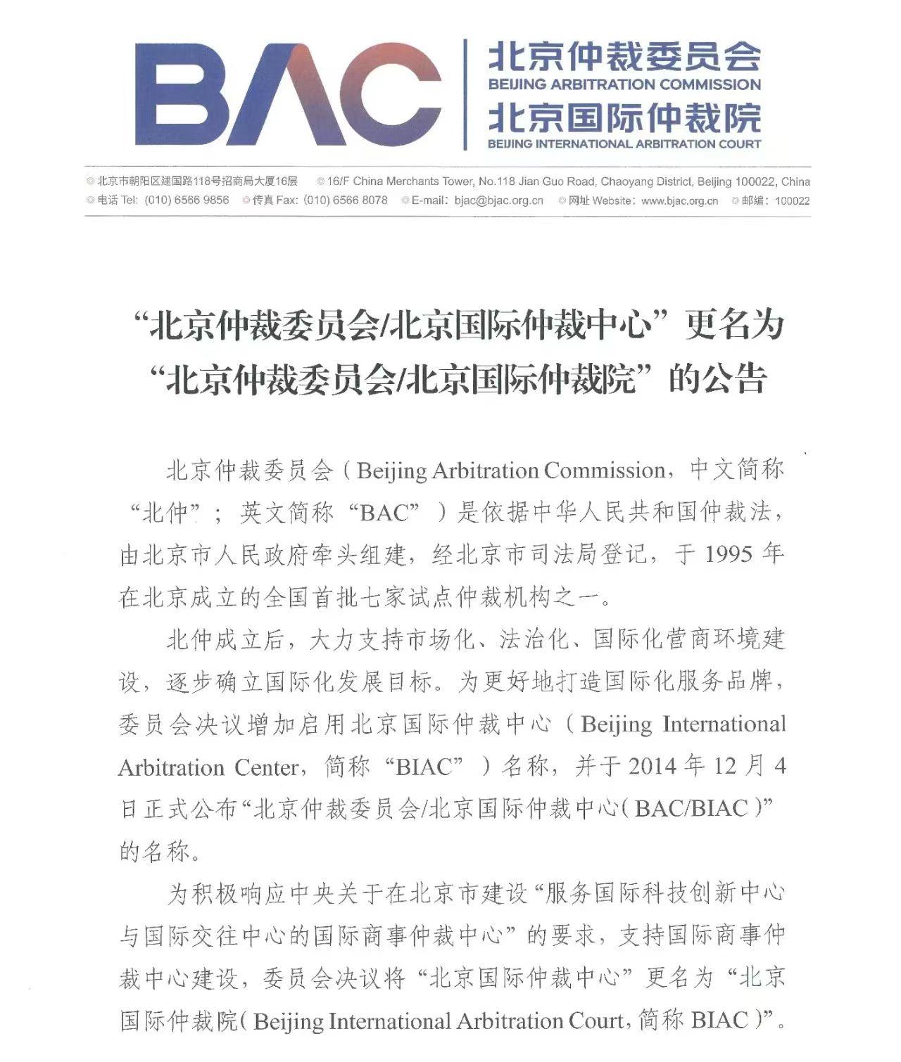 12月10日,記者從“建設(shè)國際一流仲裁機構(gòu) 助力國際商事仲裁中心建設(shè)”新聞發(fā)布會上獲悉,為積極響應中央關(guān)于在北京市打造“服務國際科技創(chuàng)新中心與國際交往中心建設(shè)的國際商事仲裁中心”的要求,支持國際商事仲裁中心建設(shè),經(jīng)北京市司法局依法變更登記,12月4日“北京仲裁委員會/北京國際仲裁中心”的名稱變更為“北京仲裁委員會/北京國際仲裁院”(以下簡稱北仲)。