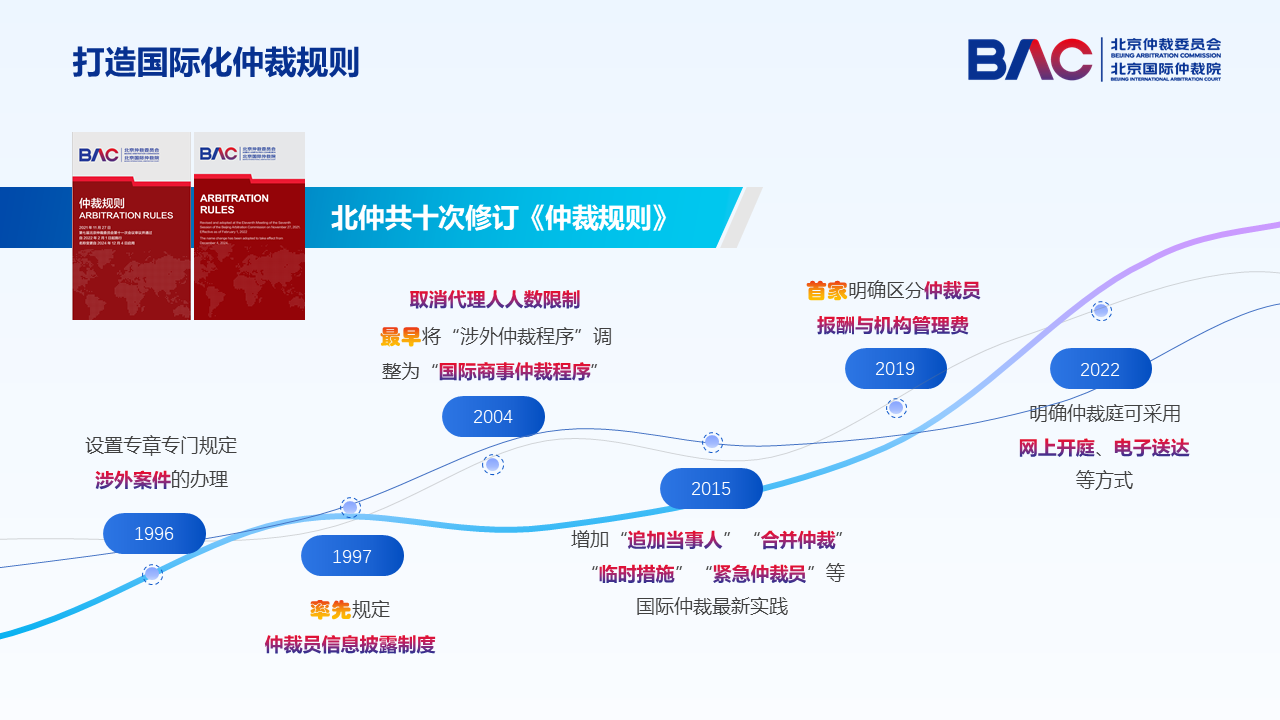 自1995年成立以來,對標(biāo)國際仲裁的最新發(fā)展與最佳實(shí)踐,北仲十次修訂《仲裁規(guī)則》。