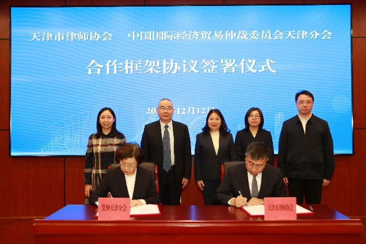12月12日,中國(guó)國(guó)際經(jīng)濟(jì)貿(mào)易仲裁委員會(huì)(以下簡(jiǎn)稱“貿(mào)仲”)天津分會(huì)與天津市律師協(xié)會(huì)在天津簽署《合作框架協(xié)議》。合作協(xié)議簽署儀式由天津律協(xié)副會(huì)長(zhǎng)楊濤主持。貿(mào)仲黨委書記兼副秘書長(zhǎng)徐延波、天津市司法局副局長(zhǎng)袁紅麗出席活動(dòng),貿(mào)仲天津分會(huì)秘書長(zhǎng)周雯、天津律協(xié)會(huì)長(zhǎng)牛同栩代表雙方簽署《合作框架協(xié)議》。