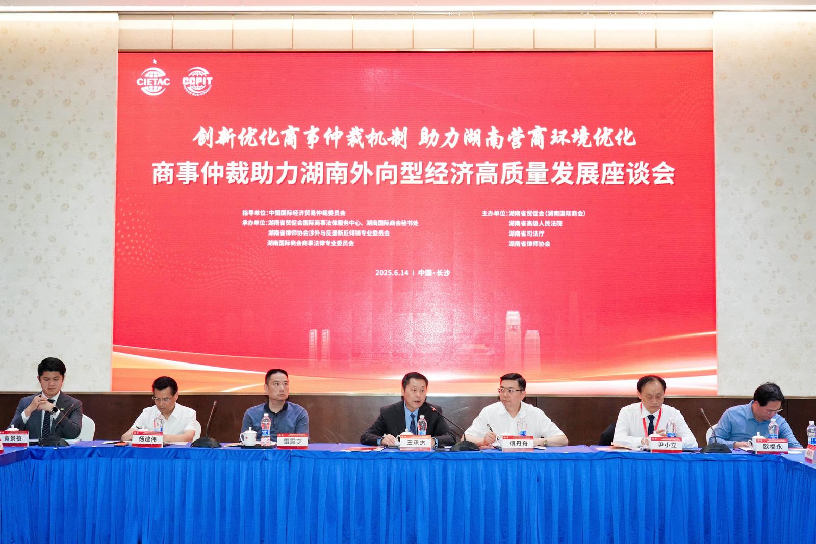 貿(mào)仲事業(yè)發(fā)展處處長(zhǎng)陸菲、委員會(huì)工作處副處長(zhǎng)吳紹軒以及湖南省貿(mào)促會(huì)法律事務(wù)部部長(zhǎng)郭毅恒等參加座談。
