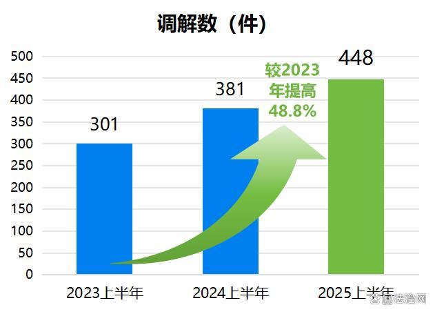 2025年上半年,以調(diào)解方式結案448件,較2024年上半年的381件提高17.6%,較2023年上半年的301件增幅高達48.8%,數(shù)量實現(xiàn)跨越式增長。調(diào)解案件數(shù)量的顯著增加,有力促進了矛盾糾紛的實質(zhì)性化解,提升了貴仲的仲裁公信力和群眾滿意度。