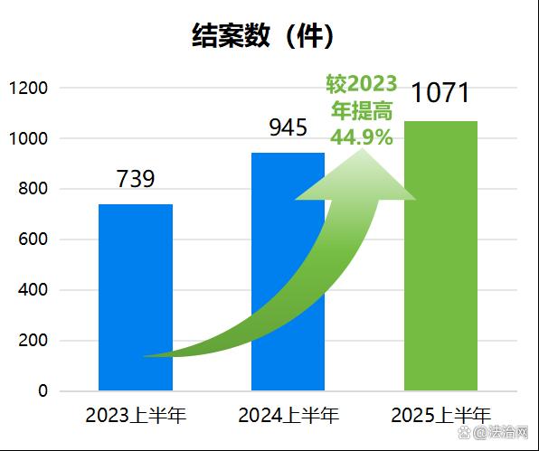 貴仲2025年上半年結案工作展現(xiàn)出強大韌性,結案數(shù)達1071件,較2024年上半年的945件增長13.3%,與2023年上半年的739件結案量相比,增幅高達44.9%,結案數(shù)量呈現(xiàn)較大幅度的增長,仲裁效率顯著提升。