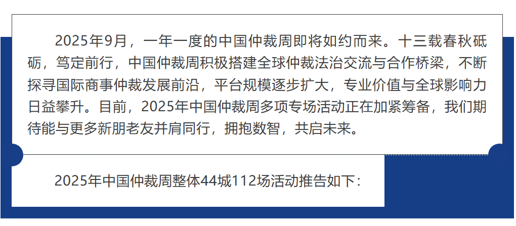 2025中國仲裁周整體44城112場活動推告