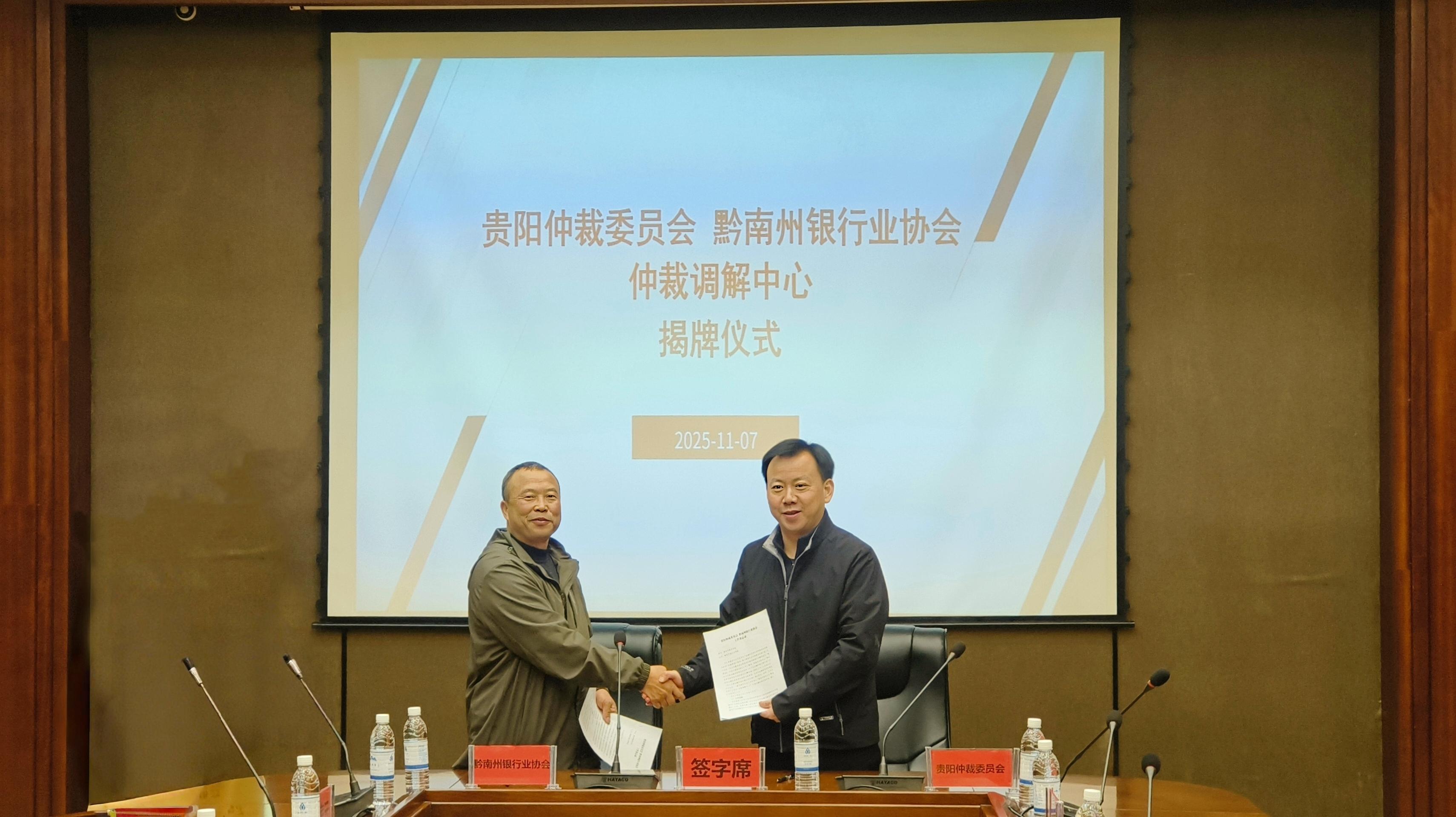 為健全黔南州金融糾紛多元化解機制,提升金融領(lǐng)域矛盾糾紛化解質(zhì)效,11月7日,“貴陽仲裁委員會黔南州銀行業(yè)協(xié)會仲裁調(diào)解中心”揭牌儀式順利舉行。貴陽仲裁委員會主任卜貴榮、黔南州金融監(jiān)管分局副局長劉廷志共同為仲裁調(diào)解中心揭牌,貴陽仲裁委員會副主任王常毅與黔南州銀行業(yè)協(xié)會秘書長陳傳勛簽署工作備忘錄。