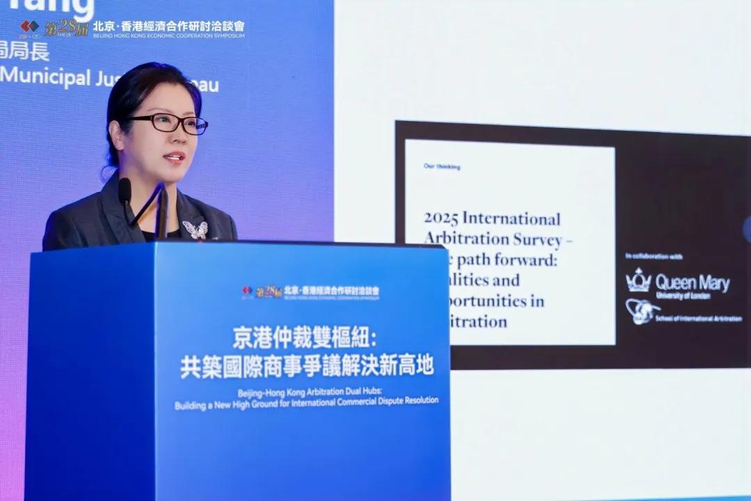 北京市司法局局長崔楊對(duì)《北京國際商事仲裁中心建設(shè)條例》進(jìn)行專題推介,她表示:《條例》的實(shí)施與北仲香港分支機(jī)構(gòu)的設(shè)立相得益彰,將推動(dòng)京港兩地在規(guī)則銜接與機(jī)制對(duì)接方面實(shí)現(xiàn)重要突破,為深化區(qū)域仲裁服務(wù)協(xié)同發(fā)展注入新動(dòng)力。