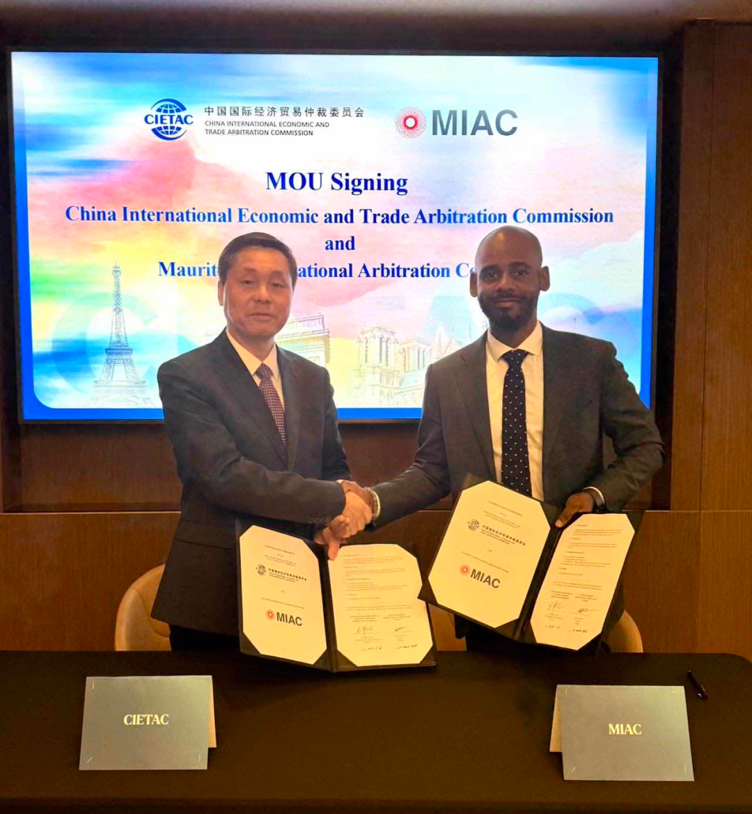 會議上舉行了合作協(xié)議簽署儀式。在全體與會代表的見證下,貿(mào)仲與毛里求斯國際仲裁中心(MIAC)簽署合作協(xié)議。