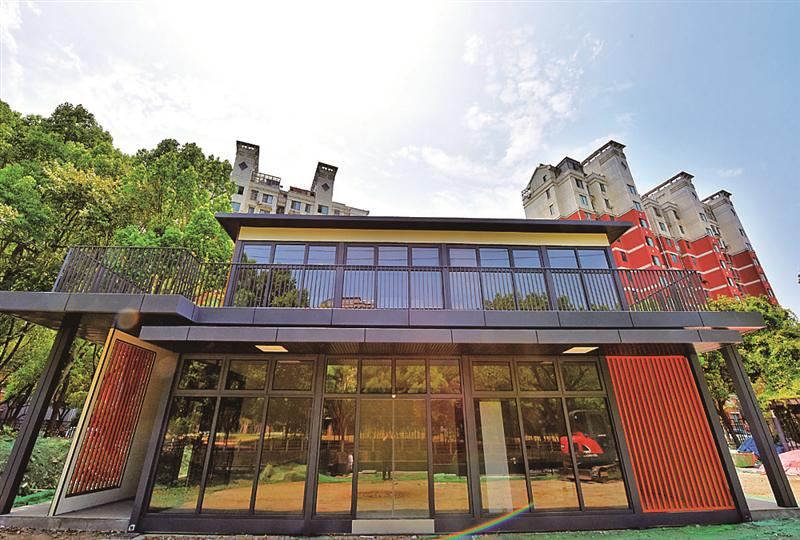 新吳區(qū)住建局相關(guān)負責人介紹,城市驛站建筑面積384平方米,是一座多功能的裝配式建筑,其基礎(chǔ)采用混凝土預制基礎(chǔ)標準生產(chǎn),建筑整體熱浸鍍鋅防腐,內(nèi)外立面全部采用干法施工,主體結(jié)構(gòu)件采用榫卯工藝進行裝配,施工現(xiàn)場無焊接處理,構(gòu)件連接緊密,結(jié)構(gòu)輕巧,保證建筑使用壽命。相較于傳統(tǒng)驛站需要3-6個月的建設(shè)周期,該驛站采用類似“搭積木”裝配式模塊化建設(shè),所有零部件采用工廠標準化生產(chǎn),組裝過程不產(chǎn)生建筑垃圾與揚塵,施工周期僅為45天,極大地降低了安裝過程中對周邊環(huán)境、居民生活的影響。