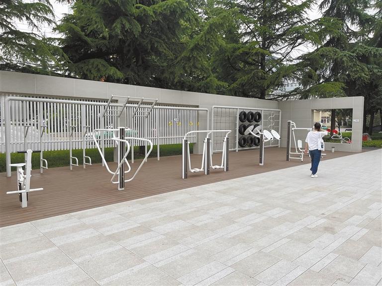 10月17日,記者在改造后的咸陽市咸通綠地廣場(chǎng)看到,這里配有休閑座椅、健身器材等設(shè)施,市民在此健身休閑。 本報(bào)記者 劉坤攝
