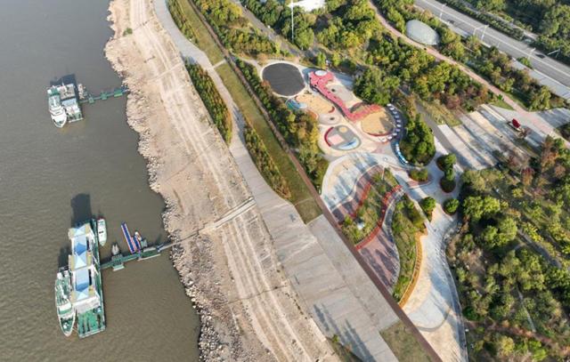 這得益于幾年前的武青堤堤防江灘綜合整治工程,將防洪功能與城市景觀自然融合,還江于民?!扒嗌浇瓰┎捎谩昂>d城市”建設(shè)理念?!蔽錆h生態(tài)環(huán)境設(shè)計(jì)研究院有限公司景觀設(shè)計(jì)師熊穎介紹,大量的植被以及緩坡、下沉式生態(tài)草溪和雨水花園,讓雨水通過(guò)景觀水系內(nèi)的植物根系生態(tài)過(guò)濾后,補(bǔ)充地下水。