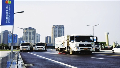 為了提高清掃保潔質(zhì)量,2015年,市政府投資1.8億元采購(gòu)了一批先進(jìn)的環(huán)衛(wèi)機(jī)械設(shè)備,三區(qū)清洗、清掃、灑水、沖洗、噴霧等車(chē)輛達(dá)到430臺(tái)套,徹底改變了原來(lái)由環(huán)衛(wèi)工人掄大掃把掃街的模式,形成了以“沖、洗、掃、收”加人工保潔的“4+1”環(huán)衛(wèi)作業(yè)模式。機(jī)械化沖洗路面徹底取代環(huán)衛(wèi)工人掃把干掃的人工清潔,把環(huán)衛(wèi)工人解放出來(lái),去從事綠化帶、行道樹(shù)坑衛(wèi)生的清潔和道路保潔、城市家具擦拭等工作,降低環(huán)衛(wèi)工人的勞動(dòng)強(qiáng)度,提高了整個(gè)城市的潔凈度和空氣濕度,清掃保潔呈現(xiàn)出立體化、全方位、全覆蓋作業(yè)的新模式。