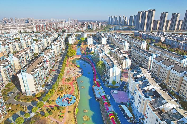 近年來,蕪湖市不斷加大對(duì)老舊小區(qū)改造力度,持續(xù)改善老舊小區(qū)居民居住環(huán)境和生活條件,提高群眾幸福感、獲得感。圖為暖陽下,改造后的江南春城華美“蝶變”、煥然一新。(記者 陳潔 攝)