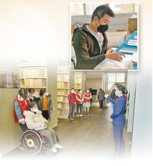 下圖:在濟(jì)寧市圖書(shū)館內(nèi),工作人員正在介紹圖書(shū)館中的無(wú)障礙設(shè)施。 馬儀 攝