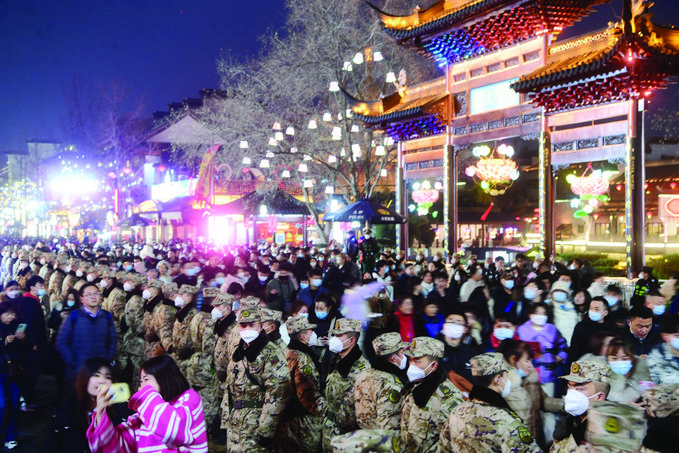今年是南京秦淮燈會(huì)三年來(lái)首次恢復(fù)線下舉辦,從春節(jié)假期內(nèi)開(kāi)始,夫子廟景區(qū)人流量就始終高漲。為了確保安全,除了夫子廟景區(qū)內(nèi)有大量武警、公安、消防等多部門(mén)投入大量力量,在景區(qū)周邊,還有大量城管執(zhí)法人員堅(jiān)守保障。