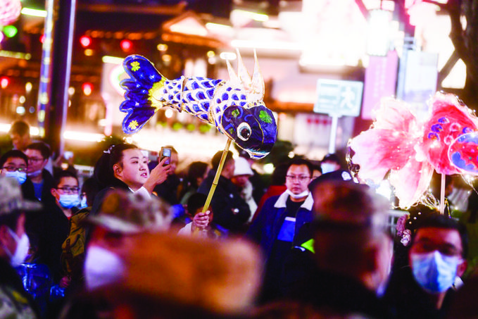 今年是南京秦淮燈會(huì)三年來(lái)首次恢復(fù)線下舉辦。2月5日正月十五元宵節(jié)當(dāng)晚,記者現(xiàn)場(chǎng)探訪發(fā)現(xiàn),由于實(shí)行預(yù)約進(jìn)場(chǎng)、嚴(yán)格分流,夫子廟景區(qū)內(nèi)雖然人氣熱鬧,但人流總體井然有序,并沒(méi)有出現(xiàn)寸步難行的情況。市民游客可較為舒適地觀賞燈彩、感受濃濃年味。