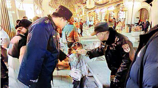 “小朋友別哭,你還記得爸媽的電話(huà)號(hào)碼嗎?”2月5日18點(diǎn)30分許,鎮(zhèn)綜治大隊(duì)隊(duì)員巡邏至蒲川水街時(shí),發(fā)現(xiàn)一個(gè)小女孩正哭著找媽媽。隊(duì)員當(dāng)即抱起小女孩,附近找了一圈后,順利找到了孩子母親。據(jù)統(tǒng)計(jì),僅元宵節(jié)當(dāng)天,佛堂古鎮(zhèn)護(hù)衛(wèi)隊(duì)就累計(jì)救助了7名走失老人、兒童。