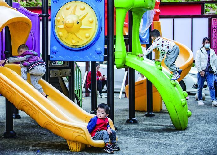 海南省瓊海市因地制宜利用城市社區(qū)空閑邊角地,建成多處“口袋公園”等休閑健身娛樂場(chǎng)所,有效拓展城市空間。圖為該市登仙嶺社區(qū)的小朋友在“口袋公園”玩耍。( 蒙鐘德 )