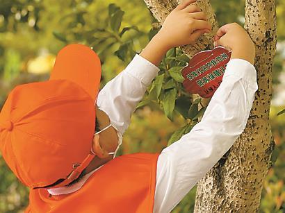 云臺(tái)二居民區(qū)的小朋友參與綠植掛牌認(rèn)養(yǎng)。 資料圖片