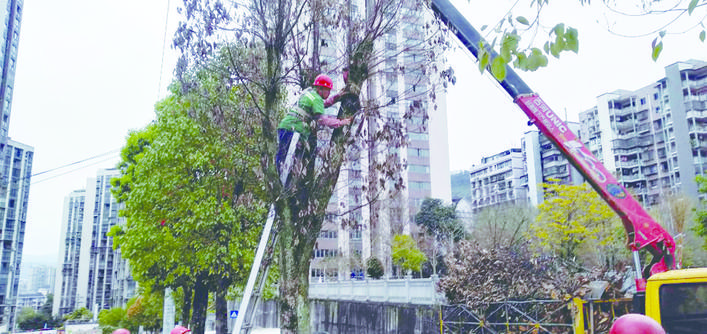 原來,位于枇杷坪青龍西路的水韻天成小區(qū)一直有個(gè)隱患,就是小區(qū)公路兩旁的部分行道樹枯萎傾斜,刮風(fēng)下雨時(shí)有倒伏傷人、砸壞車輛的風(fēng)險(xiǎn),居民為此憂心,于是向區(qū)城市管理局進(jìn)行反映。