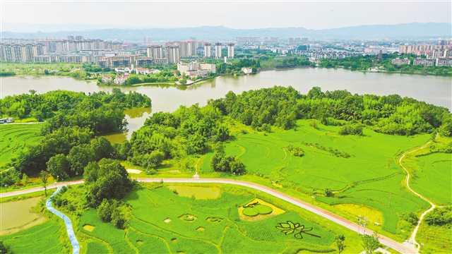 7月12日,重慶市梁平區(qū)雙桂湖國家濕地公園,稻田濕地與綠樹、湖泊交相輝映。