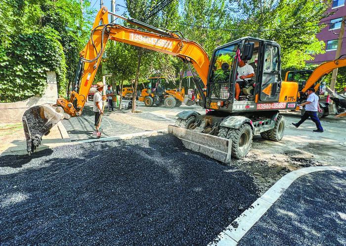 今年,遼寧省沈陽(yáng)市聚焦“為民、便民、安民”,以打造“潔化、序化、綠化、亮化、美化、文化”城市環(huán)境為目標(biāo),選擇群眾呼聲較高、有迫切提升需求的重要窗口街路、老舊小區(qū)周邊等309條背街小巷進(jìn)行微更新改造,實(shí)現(xiàn)背街小巷“U”型斷面全要素提升。圖為工人在航空路改造現(xiàn)場(chǎng)緊張施工。(張文魁)