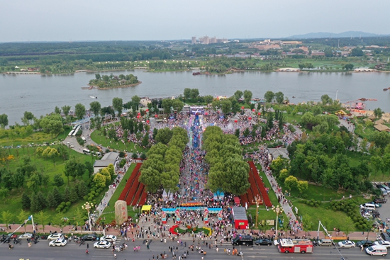 梅河口市火爆的潑水現(xiàn)場(chǎng)航拍圖。梅河口市委宣傳部供圖