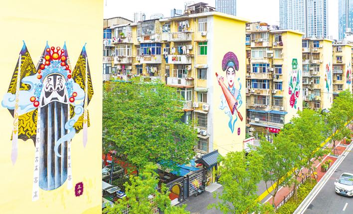 10月8日,改造后的武漢市江漢區(qū)北湖環(huán)保社區(qū)外墻上的京劇彩繪,展示生旦凈末丑人物臉譜。2023年,武漢將老舊小區(qū)改造與城市更新單元相結(jié)合,聚焦“一老一小”重點(diǎn)人群,啟動8個成片改造示范點(diǎn)項(xiàng)目,不斷提高小區(qū)居民生活品質(zhì)。截至目前,今年全市已完成269個老舊小區(qū)改造。(記者 薛婷 攝)