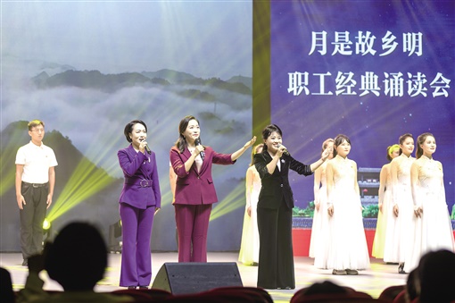 吉首市月是故鄉(xiāng)明·職工經(jīng)典誦讀會選手在誦讀《中國的圓月亮》。彭璟 攝