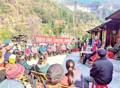 理論宣講志愿服務(wù)隊深入苗寨宣講黨的二十大精神。