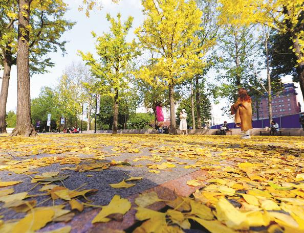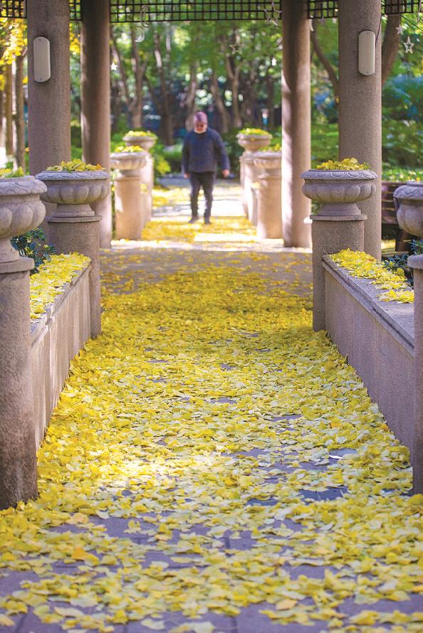 每年秋天,陽光下的上海音樂廳廣場銀杏大道都會迎來“顏值巔峰” 楊建正 攝