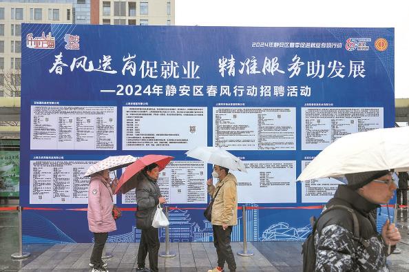 上海火車站北廣場(chǎng),“春風(fēng)行動(dòng)”招聘活動(dòng)展示板上列著各種崗位信息