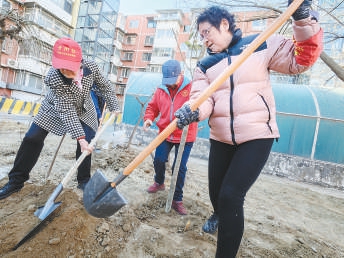 古城街道八千平社區(qū),居民和社區(qū)工作者進(jìn)行義務(wù)植樹活動(dòng),營造一個(gè)宜居的綠色家園。記者 吳鏑 攝