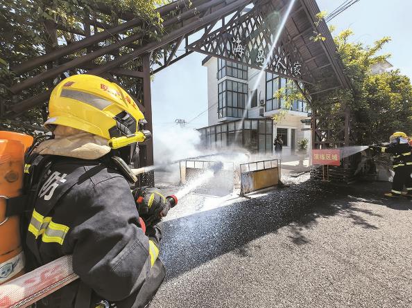 5月10日舉行的消防應(yīng)急演練中,電動自行車自燃是關(guān)注重點 記者 張龍 通訊員 黃海華 攝