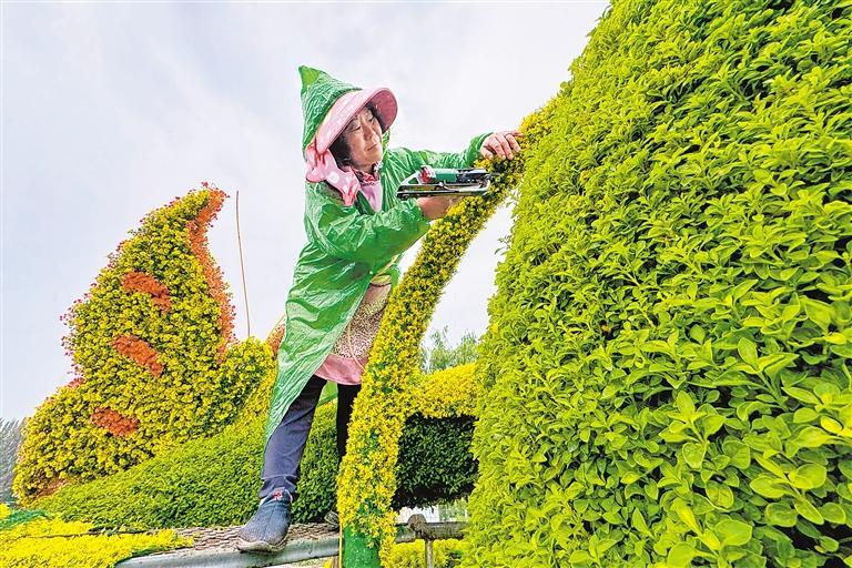 9月9日,銀川市綠化養(yǎng)護(hù)中心花卉基地,工作人員制作一座座造型獨(dú)特的綠雕。中秋、國(guó)慶“雙節(jié)”將至,銀川市園林部門將在城市主要干道、廣場(chǎng)公園展擺120萬(wàn)盆鮮花,這一抹抹亮色將為城市帶來無限活力和濃郁的節(jié)日氛圍。 記者 馬楠 王洋 攝