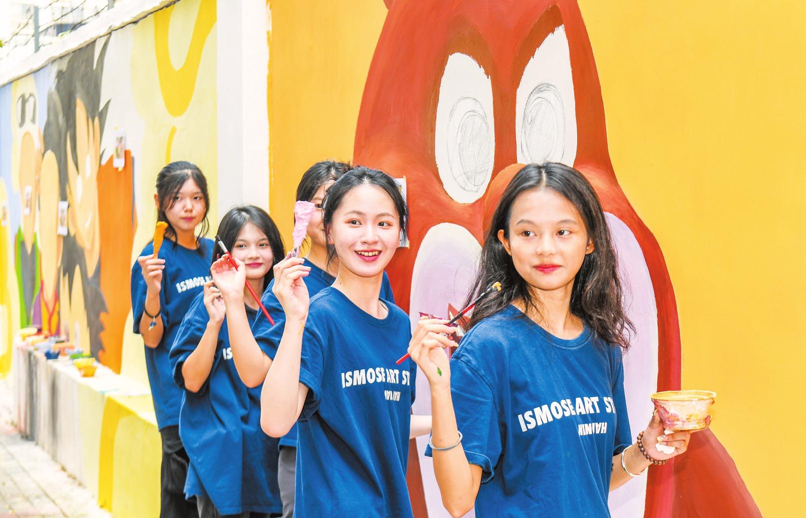 “作為一名海南人,能夠用畫筆為家鄉(xiāng)服務,我覺得十分自豪?!编嵥佳攀菂⑴c此次彩繪的藝術愛好者之一,她表示,新潮有趣的墻繪能夠吸引更多人來打卡,在每一幅墻畫前感受不一樣的文化。