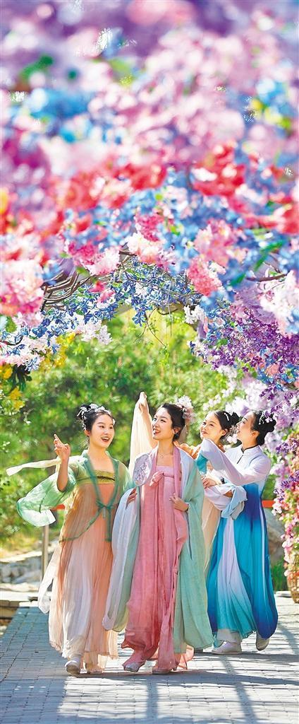 4月6日,游客在山東省臨沂市郯城縣醉東風鄉(xiāng)村藝棧游玩。張春雷攝(中經視覺)