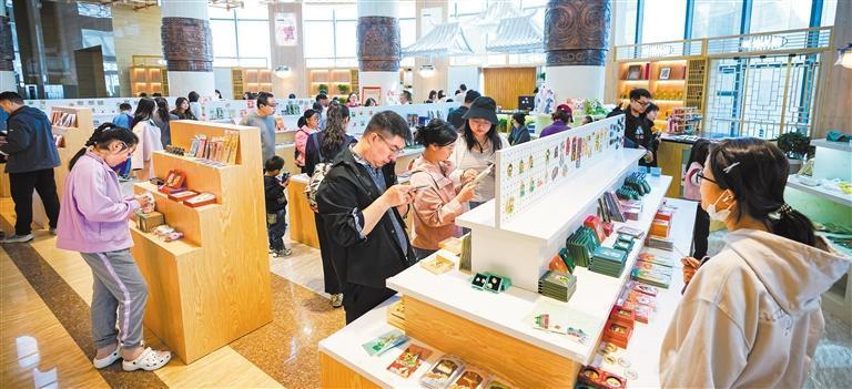 4月6日,山西省運城博物館,游客在選購琳瑯滿目的文創(chuàng)產品。閆鑫攝(中經視覺)