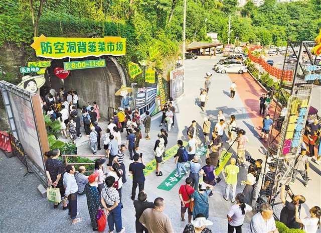重慶建“洞子菜市”的探索很早就開始了。2021年,沙坪壩區(qū)石井坡街道和平山社區(qū)的大河溝菜市場(chǎng)因拆舊建新,臨時(shí)搬遷至映山紅公交站附近的一條廢棄鐵路隧道。搭建攤位、安裝照明、制作標(biāo)識(shí)、安排專人保潔,經(jīng)過改造,這條建于20世紀(jì)60年代的隧道,被打造成便民利民的“洞子菜市”,服務(wù)周邊4000多戶居民。