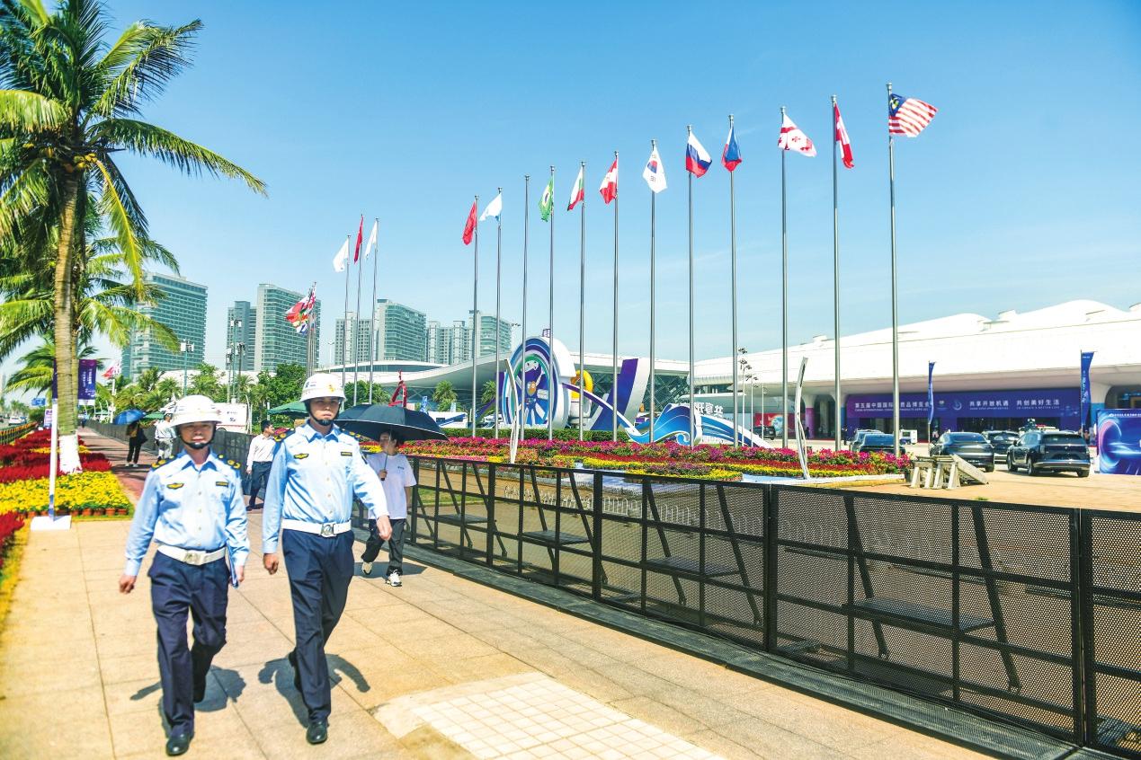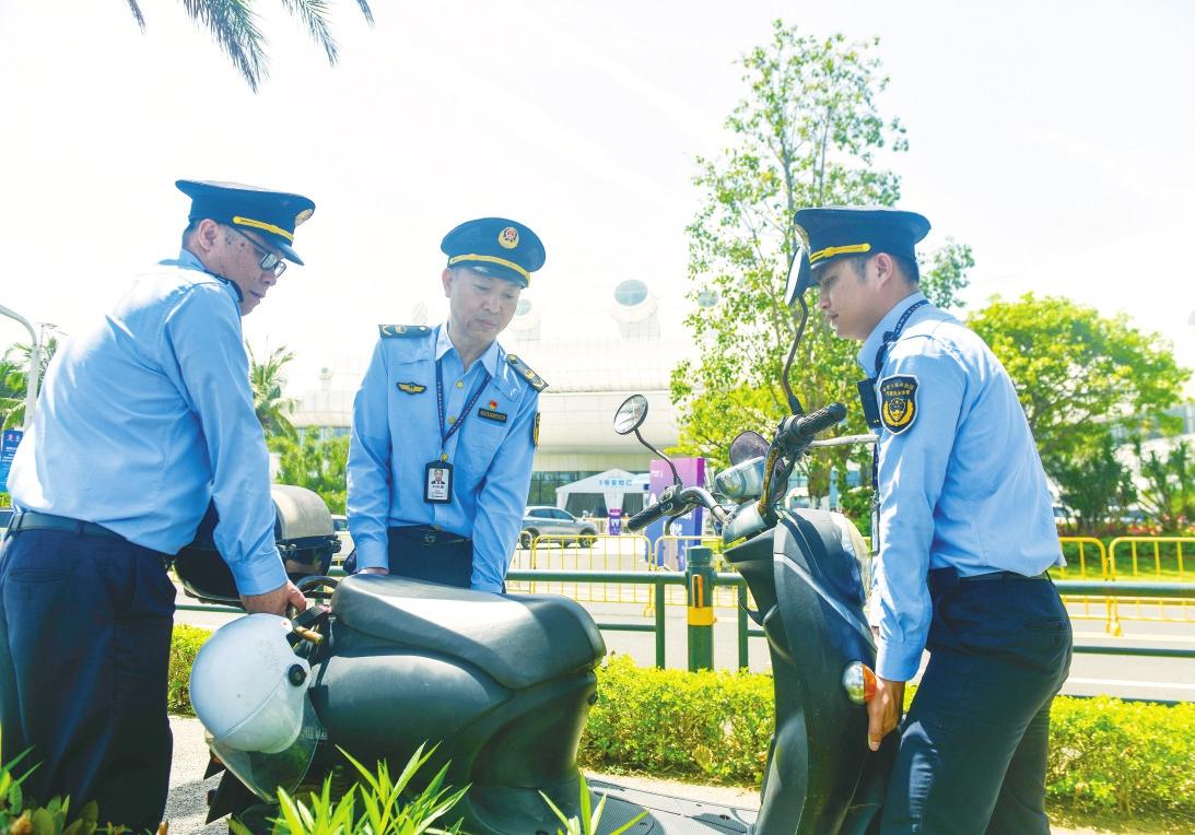 此外,作為支援力量的文化市場行政執(zhí)法支隊、海洋和漁業(yè)行政執(zhí)法支隊、生態(tài)環(huán)境保護(hù)行政執(zhí)法支隊,分別組織各單位骨干力量,參與消博會服務(wù)保障工作。
