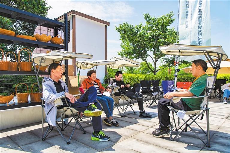 4月26日,浙江省金華市雙龍風(fēng)景旅游區(qū)(金華山)“露營之家”基地,游客在體驗露營裝備。從帳篷和桌椅,到天幕和投影儀,消費者對露營裝備的需求日益多樣化。胡肖飛攝(中經(jīng)視覺)