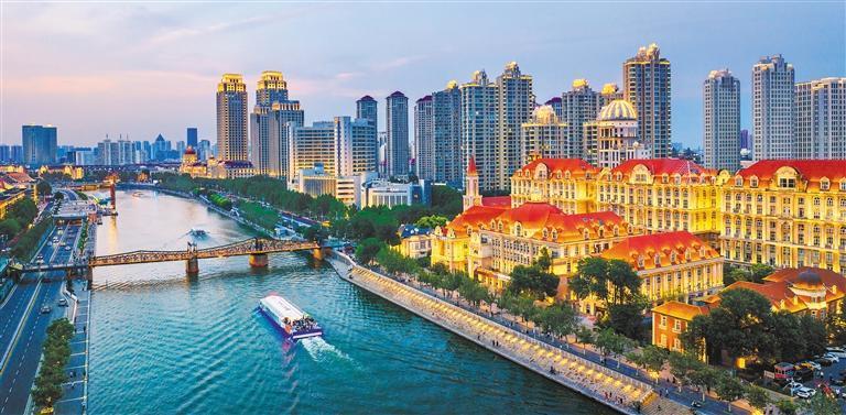7月10日,天津市海河兩岸燈光璀璨。近年來,當(dāng)?shù)丶铀偻七M(jìn)美麗河湖建設(shè),提升城市生態(tài)宜居水平。張明偉攝(中經(jīng)視覺)