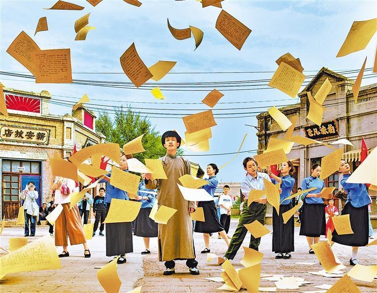 10月5日,內(nèi)蒙古自治區(qū)鄂爾多斯市伊金霍洛旗鄂爾多斯文化產(chǎn)業(yè)園影視拍攝基地,演員在沉浸式電影場景里表演,吸引眾多游客圍觀欣賞。王正攝(中經(jīng)視覺)