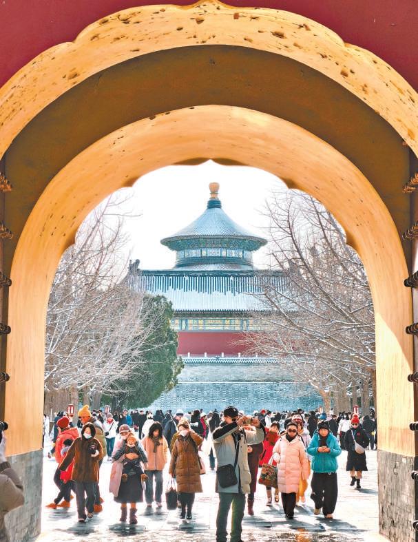 天壇公園內(nèi),游客拍攝古建雪景。記者 劉平攝