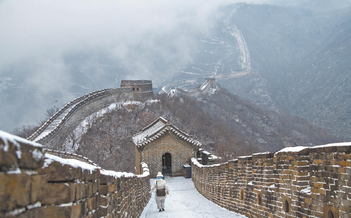 慕田峪長(zhǎng)城,銀裝映蒼山,烽臺(tái)沐白雪愈顯雄渾。田振輝攝