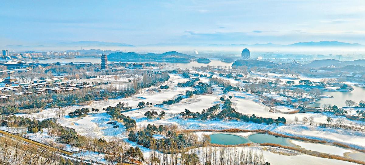 雁棲湖國(guó)際會(huì)都披雪而立,清雅風(fēng)貌宛若蘊(yùn)含中式韻味的山水畫(huà)。 朱紅衛(wèi)攝